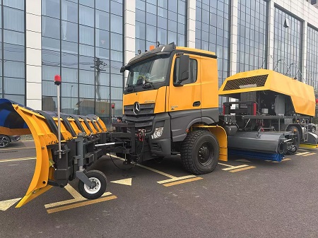 三合一吹雪车是高效、多功能的除雪车辆,集推雪、扫雪和吹雪功能于一体。它能够应对各种雪情和不同的作业环境,通过调整除雪设备的工作参数,灵活切换工作模式,进行有效的除雪工作;能够在一次作业中完成多种除雪任务,大大提高了除雪工作的效率和质量,广泛应用于城市道路、高速公路、机场跑道、广场等场所的冬季除雪作业。